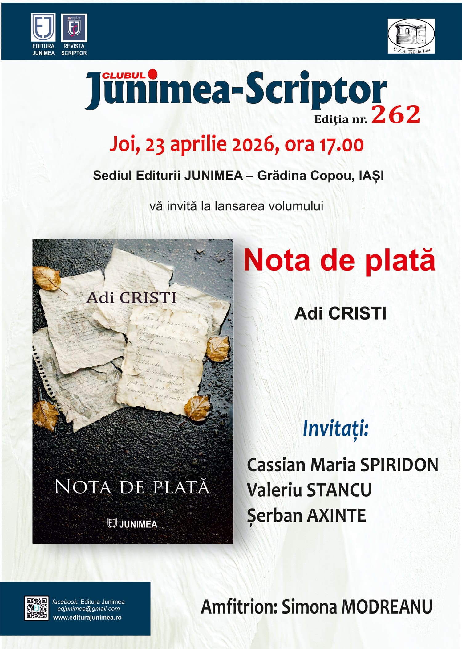 Editura Junimea promovează cărți de debut prin concursurile / festivaluri literare, unde este partener.