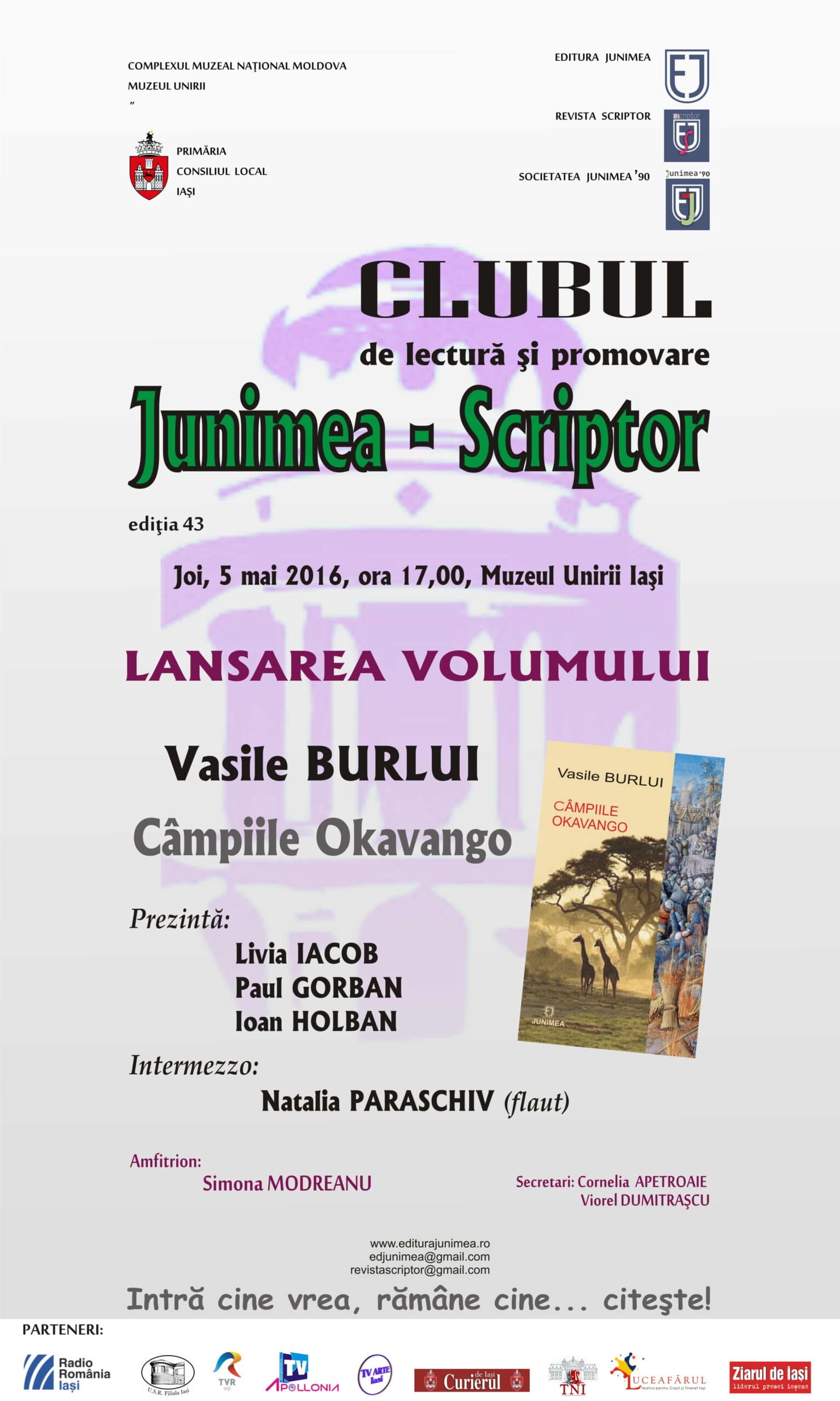 Editura Junimea continuă (în al doilea an de exprimare a Clubului de la Biblioteca universitară „Mihai Eminescu”) formula de dialog săptămânal cu autorii, cu publicul, cu mass-media, cu deviza ludică „Intră cine vrea, rămâne cine citeşte!”