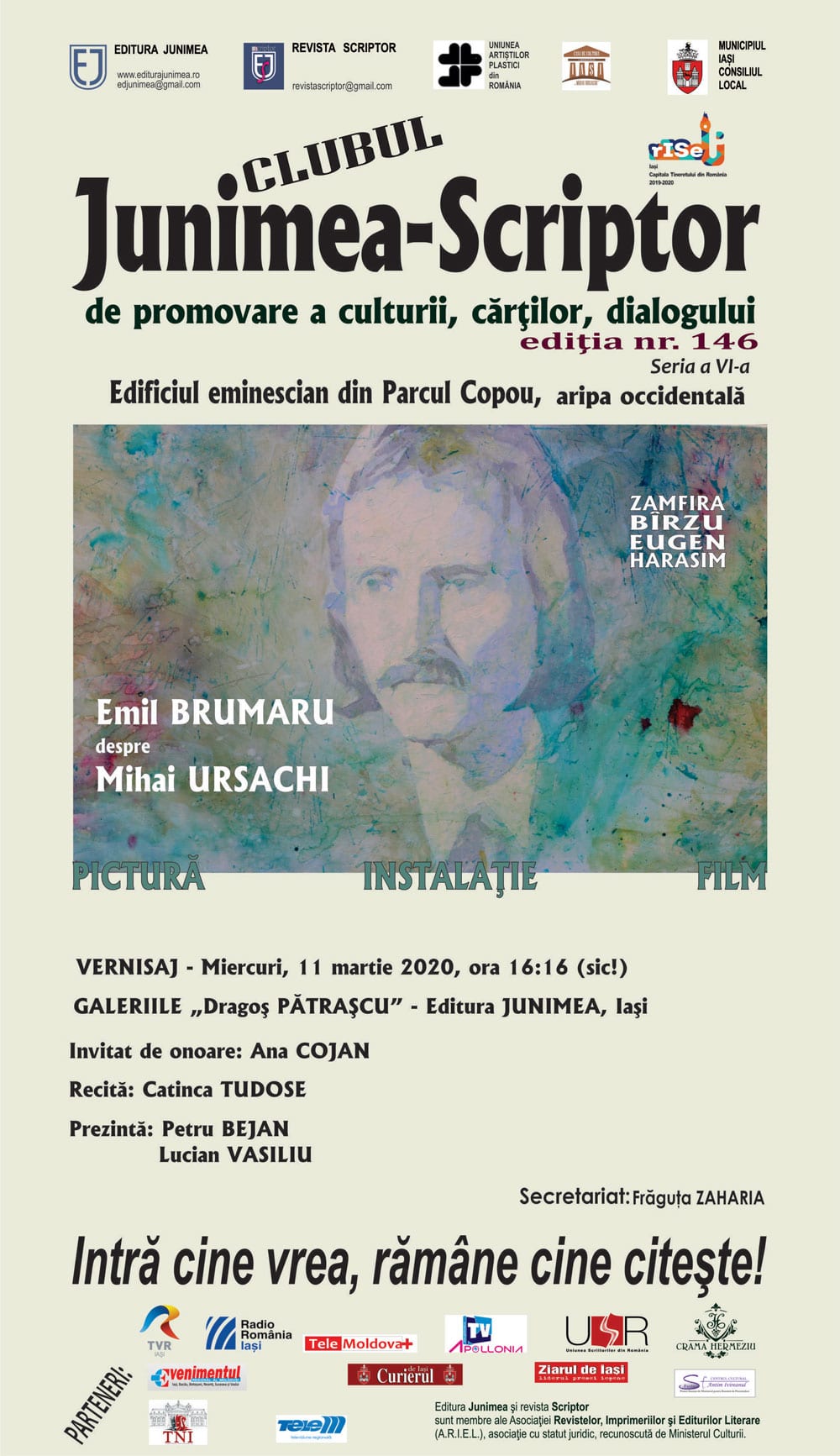 Vernisaj: miercuri, 11 martie 2020, ora 16.16 (sic!), Galeriile „Dragoş PĂTRAŞCU” – Editura Junimea, Iaşi