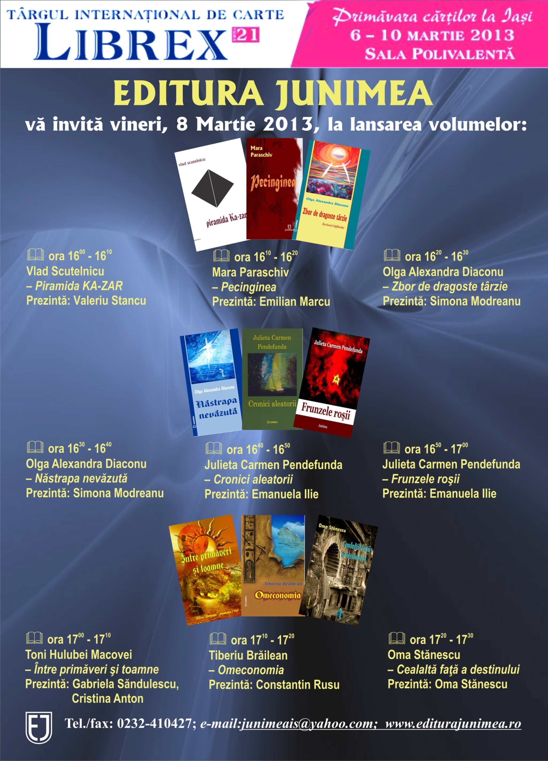 Editura Junimea vă invită vineri, 8 Martie 2013, la lansarea volumelor: