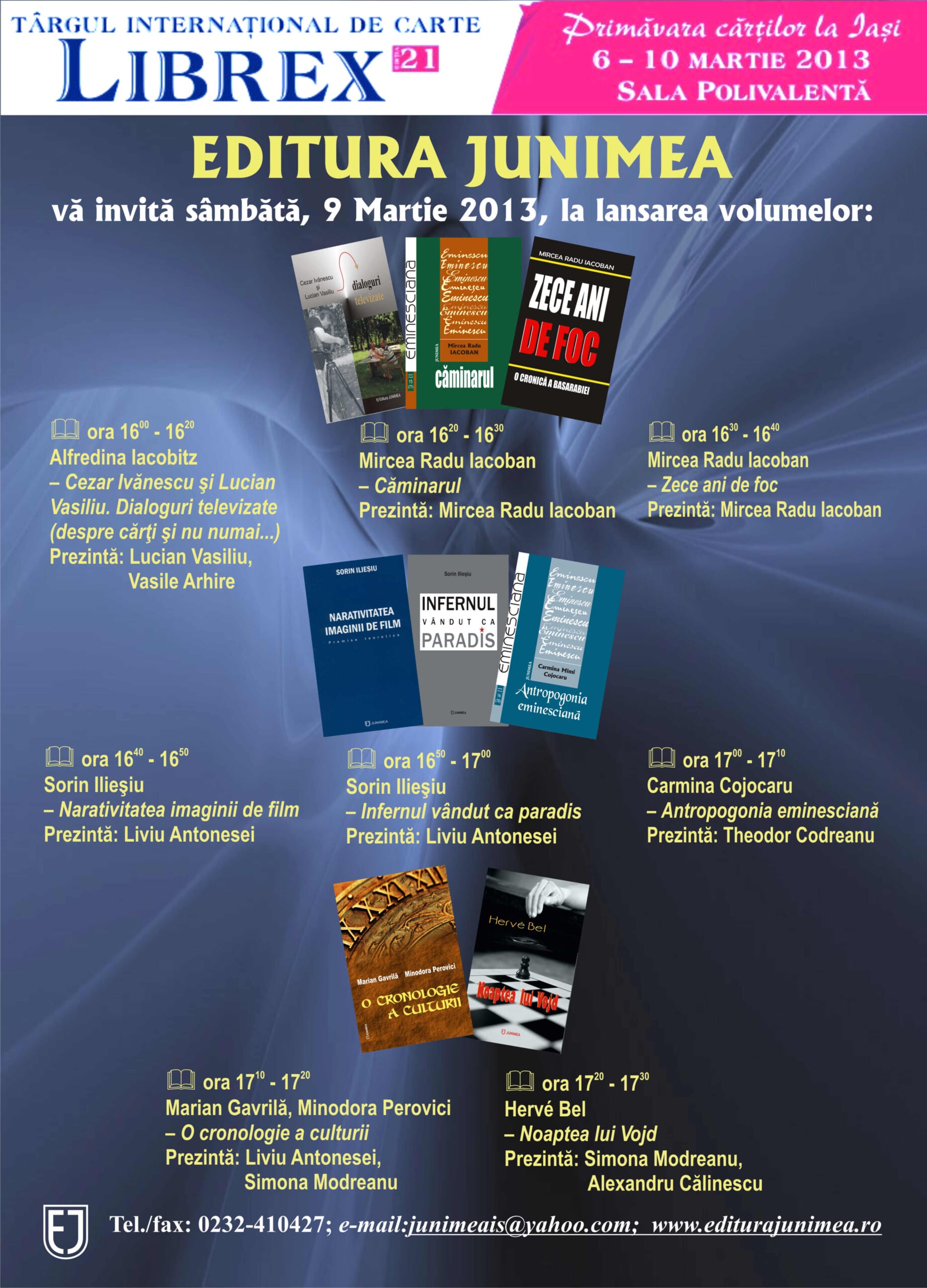 Editura Junimea vă invită vineri, 9 Martie 2013, la Targul internațional de carte LIBREX pentru lansări inedite de carte: