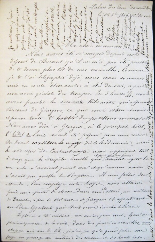 Scrisoarea lui Émile Picot din 5/17 octombrie 1866, din Bucureşti (arhiva familiei)